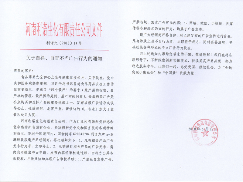 河南利諾生化有限責任公司立足于綠色健康產(chǎn)業(yè),以生物工程制品為主導,是一家集研發(fā)、生產(chǎn)、銷售為一體的高科技企業(yè)。公司科技團隊通過與國內(nèi)科研院所合作,成功地開發(fā)出高新技術產(chǎn)品:“高純度 α-亞麻酸”系列產(chǎn)品。